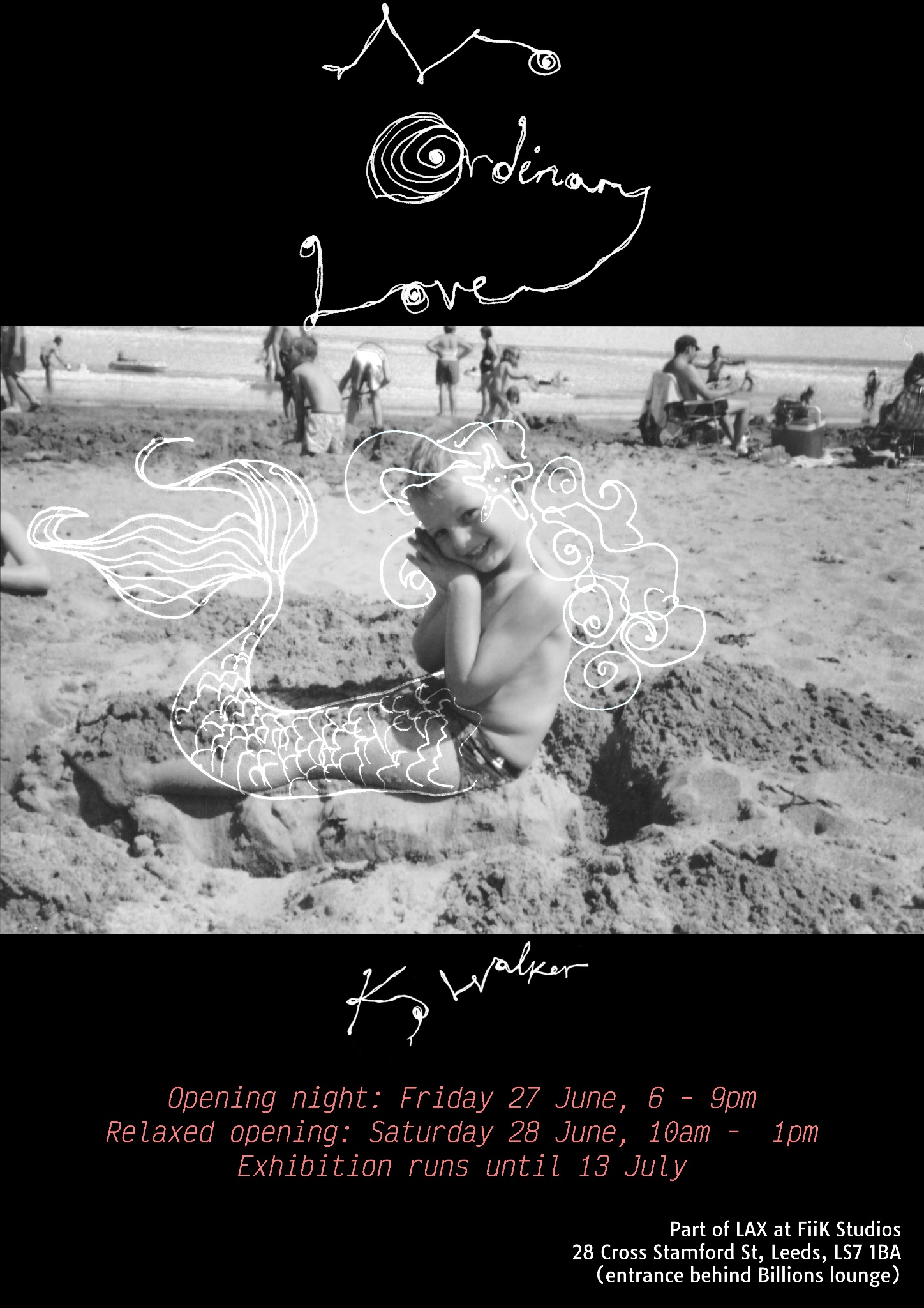 No Ordinary Love is a brand new body of work and third solo exhibition by Leeds-based artist K Walker. Working collaboratively with photographers Jonathan Turner and Emma Bentley Fox, K has created two distinct but interrelated photographic series exploring their long-held obsession with mermaids.